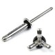 Optimal for applications requiring the tensile load to be spread over a large area, such as when fastening into plastics, fibreglass and other composite material. During installation, the rivet body folds into 3 separate legs, creating a large load bearing area, and minimising the possibility of damage to the parent materials.